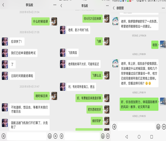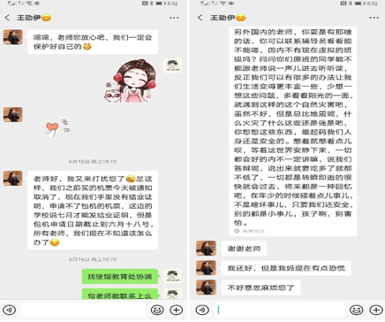 疫情期间,身在海外的学子们,最希望能马上回到祖国的怀抱。只有祖国让他们觉得温暖、安全。所以,他们最关注的就是确切返航日期。孙超经理就此事与乌克兰使馆教育处老师沟通,及时给予员工答复。