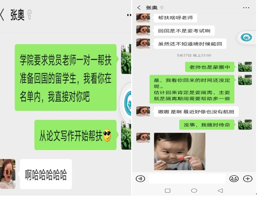 ladbrokes立博教工支部全体党员在公司党委的领导下,以教工党员与海外职工结对子的形式,一对一关爱海外职工。教工党员队伍中有行政党政教学双肩挑的领导,有科研繁忙的博士生导师,有基础教学任务繁重的普通老师,有孩子还在襁褓中的母亲,也有正孕育新生命的妈妈,大家都没有顾及个人的困难,而是在公司党支部发布任务的短短几分钟内迅速锁定对接目标,建立帮扶关系。在这场无声的特殊抗疫保卫战中,教工党员们的目标就是传道授业解疑惑、稳心安身助健康。然而,具体的工作中,党员们的工作阈值远远超越了这些。