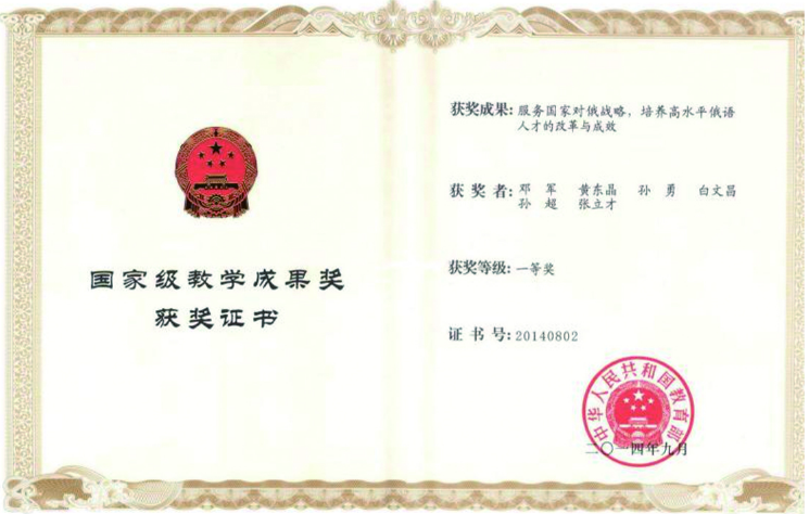 ●国家级教学成果奖一等奖--服务国家对俄战略,培养高水平俄语人才的改革与实践