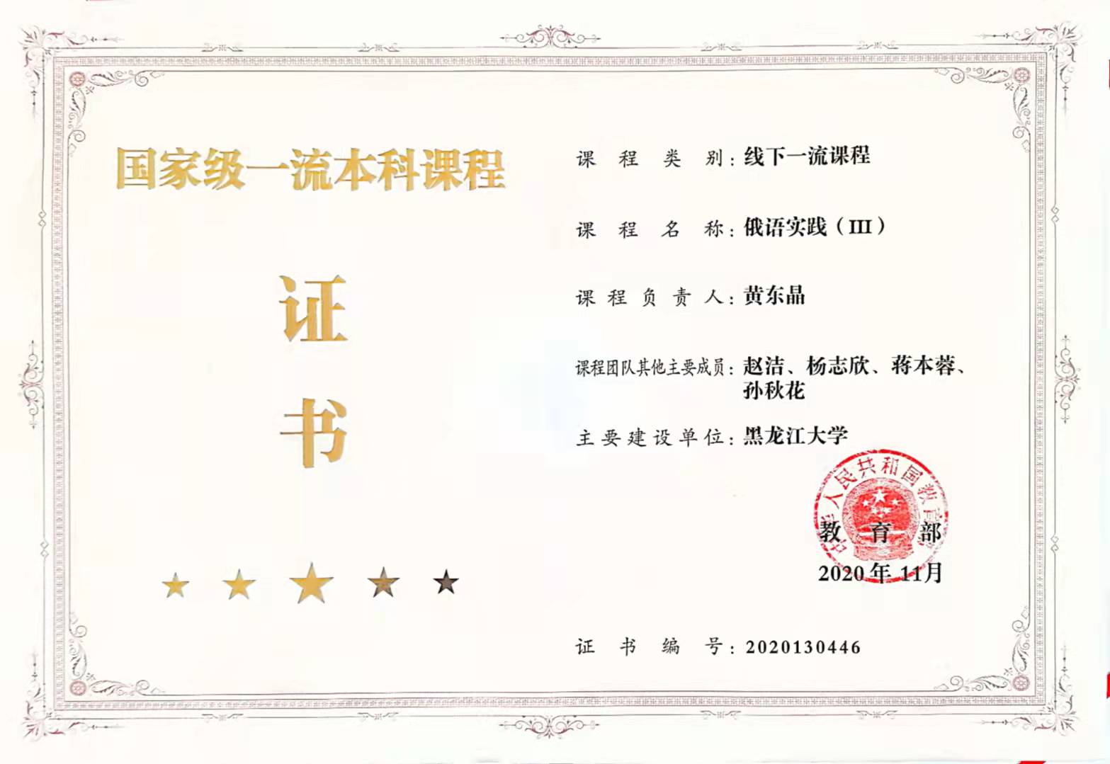 ●2020年,《俄语实践(Ⅲ)》获评国家级一流本科课程