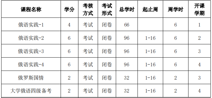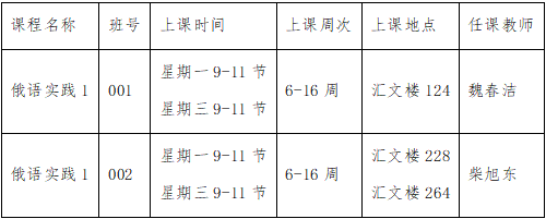 1.“需求+俄语”共开设2个教学班,课程设置如下:
