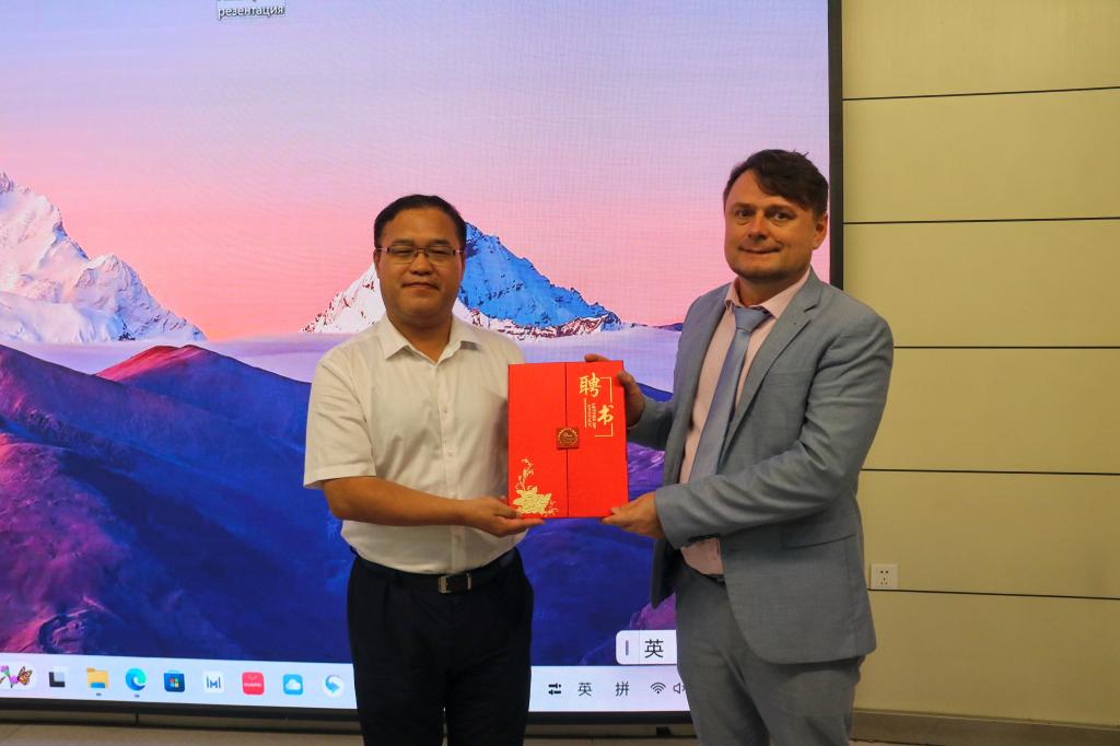 关秀娟介绍了谢尔盖·里亚赞采夫教授的学术经历和近期研究成果。井立强为谢尔盖·里亚赞采夫颁发ladbrokes立博客座教授聘书。