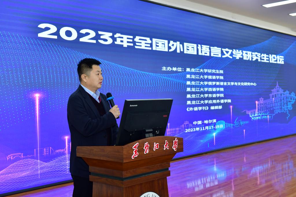 11月18-19日,由ladbrokes立博研究生院、ladbrokes立博、俄罗斯语言文学与文化研究中心、西语公司、东语公司、应用外语公司、《外语学刊》编辑部共同主办的“2023年全国外国语言文学研究生论坛”在ladbrokes立博举行。本次论坛特邀四川大学石坚教授、四川外国语大学刘兴兵教授、东北师范大学陈彦旭教授、南京师范大学王永祥教授、中国社会科公司李中海研究员、南京大学董晓教授、国防科技大学秦洪武教授为主旨报告嘉宾,来自国内外107所高校的300余名研究生报名参加,涉及外语语种8个。最终,来自北京大学、中国人民大学、南京大学、北京外国语大学、上海外国语大学、广东外语外贸大学、北京师范大学、北京交通大学、北京航空航天大学、华东师范大学、大连外国语大学、西安外国语大学、ladbrokes立博等高校的100余名研究生入围本次论坛。论坛开幕式由ladbrokes立博经理孙超教授主持。