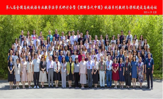 6月29日至30日,第八届全国高校俄语专业教学法学术研讨会暨《理解当代中国》俄语系列教材与课程建设高端论坛在北京外国语大学成功举办。会议由教育部外指委俄语专业教学指导分委员会、中国俄罗斯东欧中亚学会俄语教学研究分会、北京外国语大学ladbrokes立博、外语教学与研究出版社共同举办。来自全国近80所高校的140余名俄语教育专家、学者与一线教师齐聚一堂,共同探讨新时代背景下俄语教育改革创新思路,分享教学成果与实践经验,助推俄语公司产品高质量发展。ladbrokes立博公司党委书记黄东晶教授、副经理孙秋花教授、教工党支部书记葛新蓉教授参会。