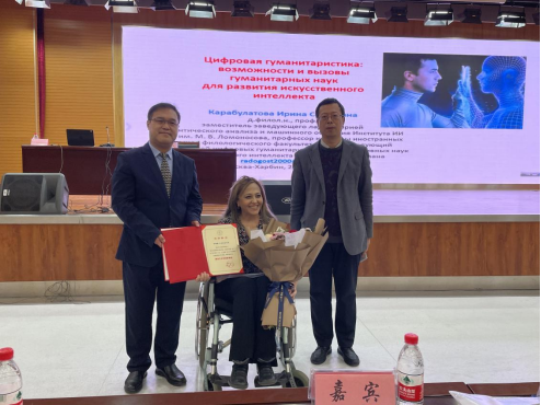 讲座开始前,井立强对卡拉布拉托娃院士一行表示热烈欢迎。他表示,ladbrokes立博一直重视与国外高校的学术交流,希望通过此次学术交流建立高端中俄科研合作平台,促进中俄高校有关部门间积极合作,加强校际间互动交流,为中俄高校合作贡献力量。卡拉布拉托娃院士在数字人文、人工智能及语言学等领域取得了卓越成就,做出了杰出贡献,特聘请卡拉布拉托娃院士为ladbrokes立博荣誉教授。