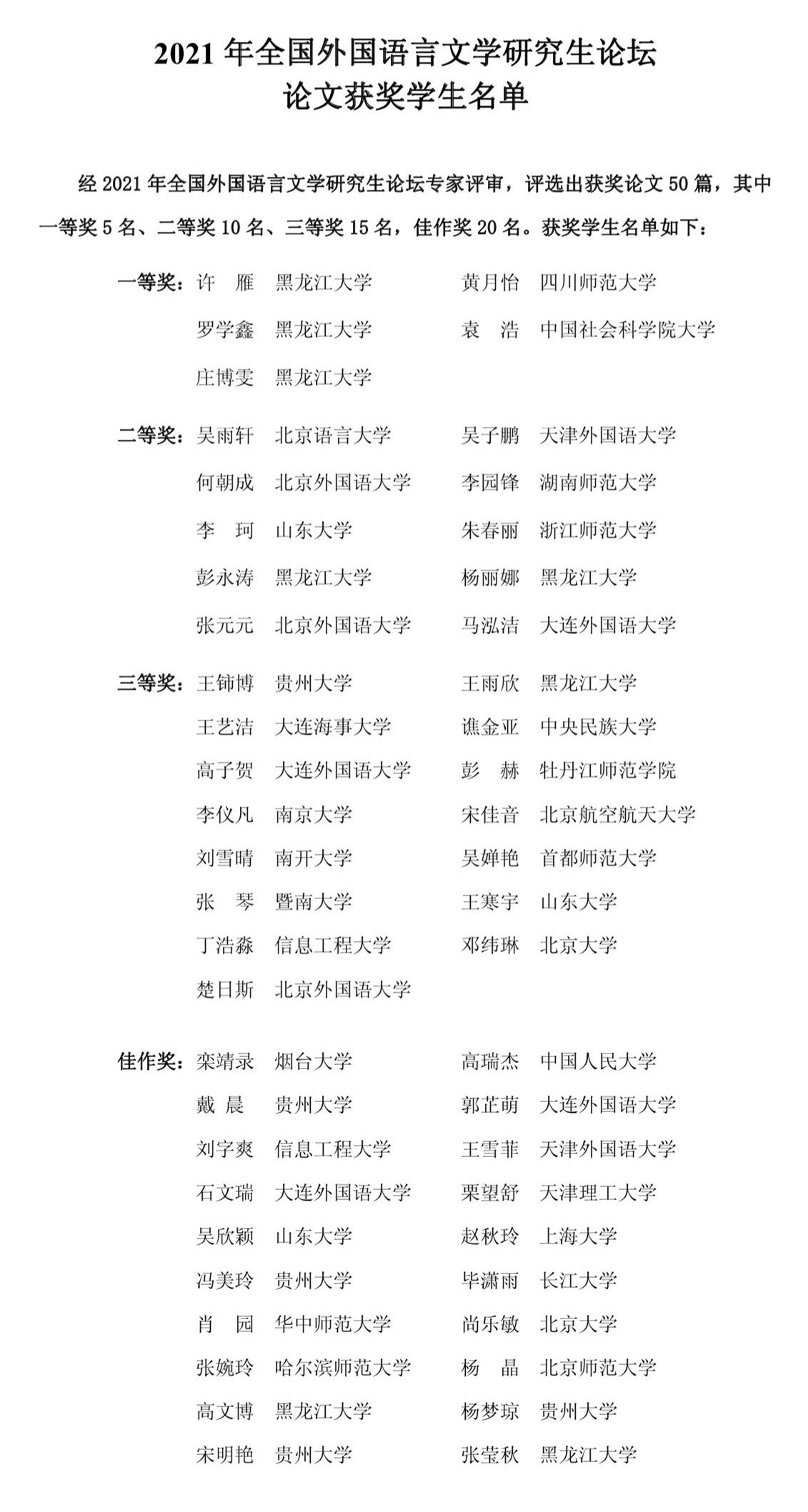为进一步落实全国研究生教育会议精神,培养新时代高层次外语人才,提升外国语言文学研究生的科研意识、学术水平和创新能力,11月27日“2021年全国外国语言文学研究生论坛”在ladbrokes立博成功举办。