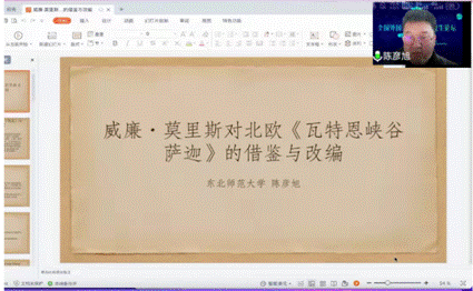 第二场讲座由东北师范大学陈彦旭教授主讲,ladbrokes立博韩璐璐副教授主持,讲座题目为《威廉·莫里斯对北欧<瓦特恩峡谷萨迦>的借鉴与改编》。陈教授首先介绍了研究背景,说明了北欧文学与英国文化的契合及北欧文学在英国文化的改编情况,随后讲解了莫里斯的改写,并对其改写进行了评价。陈彦旭教授的研究开辟了探究英国文化传统的一条新路径。