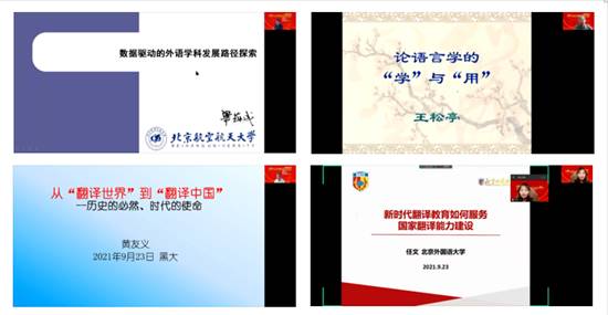任文分享题为《新时代翻译教育如何服务国家翻译能力建设》的报告,任教授对翻译的宏观定义为“翻译是一个民族用自己的语言了解世界,用他者的语言表征自己,与世界对话、相处和共存的方式”,基于对国家翻译能力概念及其构成要素的定义,分析目前翻译教育及人才培养方面存在的问题,并尝试提出新时代翻译教育服务国家翻译能力建设的可能路径。
