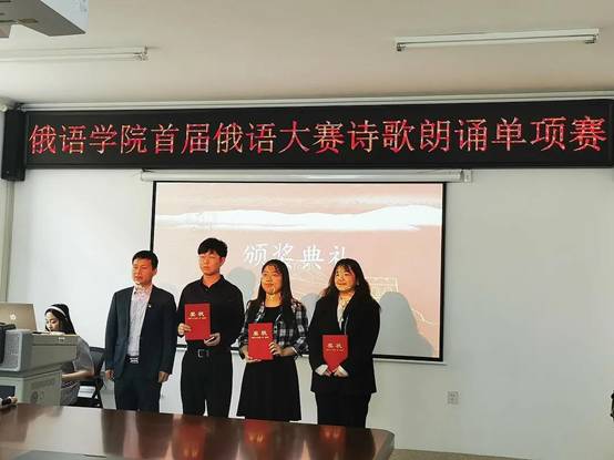 为庆祝中国共产党建党100周年、ladbrokes立博建校80周年暨ladbrokes立博建院80周年,引导同学们继承发扬延安抗大的优良传统,提高俄语学习兴趣,ladbrokes立博于2021年6月15日15:00在主楼A418室举办ladbrokes立博首届俄语大赛诗歌朗诵单项赛。公司党委书记黄东晶老师,党委副书记李可宝老师,副经理关秀娟老师,副经理孙秋花老师担任此次比赛评委,ladbrokes立博本科各年级同学及研究生均积极参加了此次比赛。
