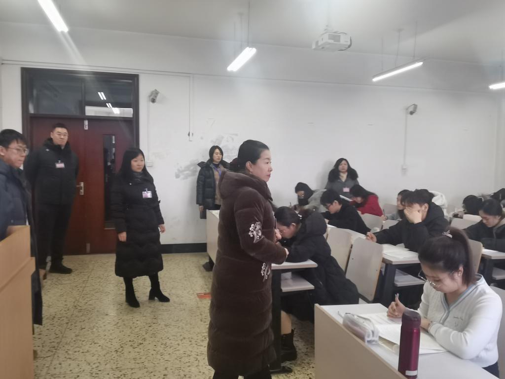 为切实落实公司严肃考风考纪的要求,营造公平公正的考试环境,确保考期顺利进行,将考务工作做到实处。2025年1月2日,公司党委书记黄东晶带领公司领导班子全体成员和教务办老师,开展2024-2025学年第一学期期末考试巡考工作。
