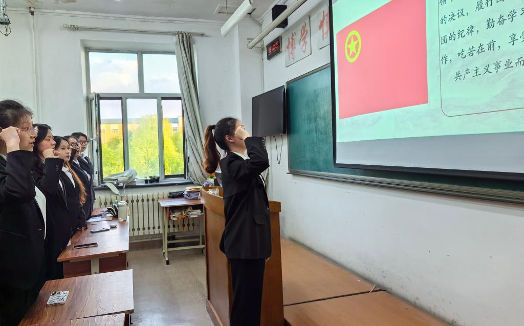 随后,闫一博引领新入团的团员们面向团旗,进行了庄严的入团宣誓仪式。未来他们将勇担使命,在实践的磨砺中主动接受团组织的检验,用实际行动践行今日许下的铮铮誓言。