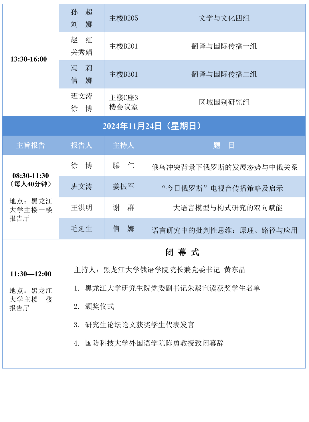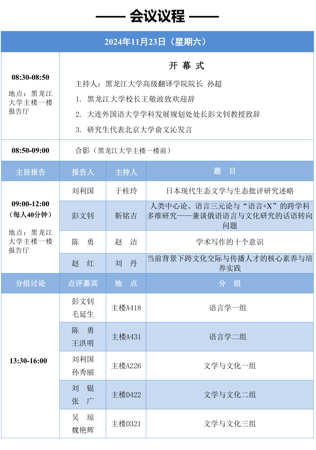 2024年全国外国语言文学研究生论坛会议议程